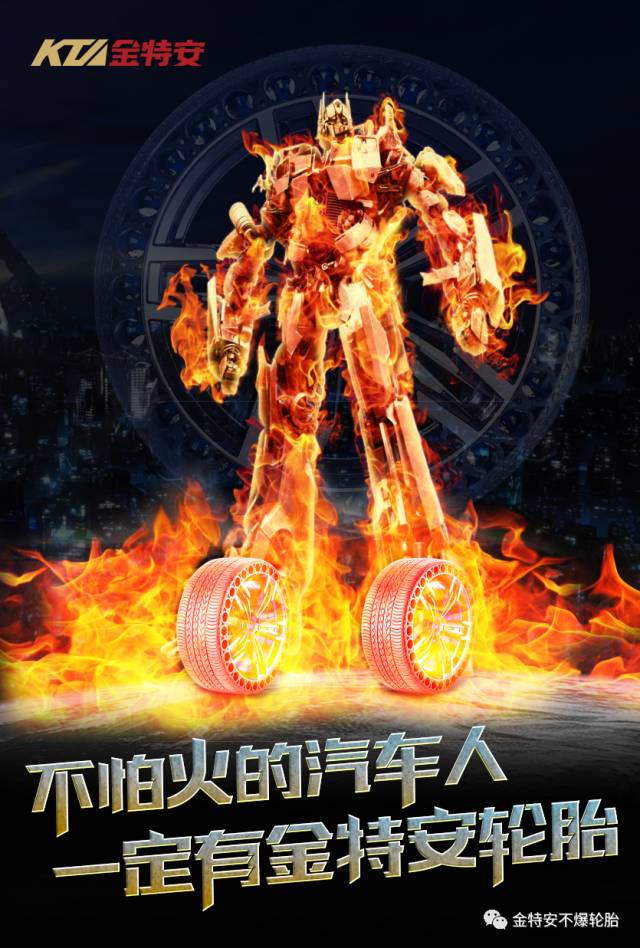 变形金刚从2007年第一部上映到如今,十年付出塑造经典,擎天柱、大黄蜂、霸天虎,no sacrifice no victory!而金特安人十九年的坚持打造安全环保舒适的开式轮胎,不惧火烧,不怕扎钉,保证安全的同时兼具环保舒适的特性,刚柔并济。Kingtitan,引领轮胎环保舒适大时代。